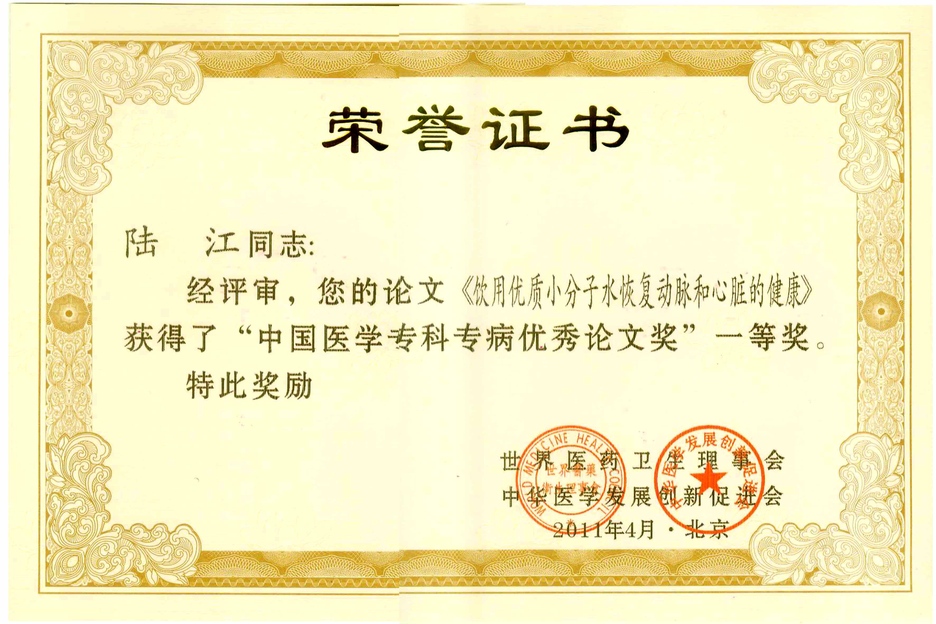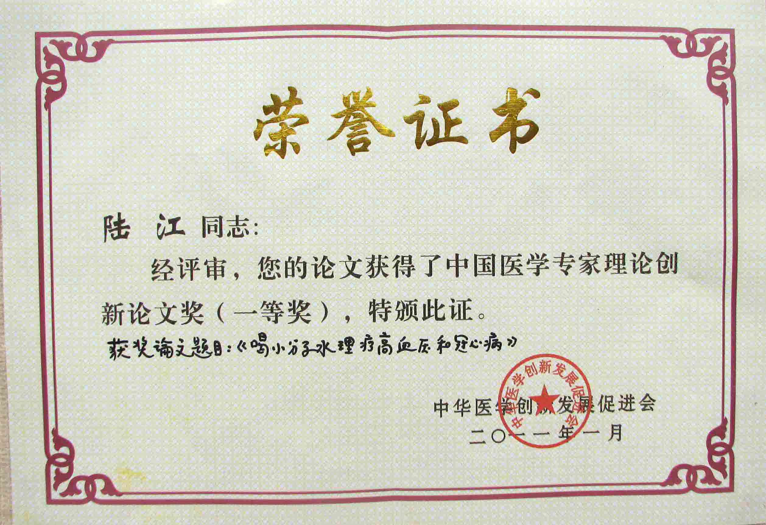 人類幾千年來(lái)患以上病癥需終生服藥,幾十年也不能治愈??墒俏覈?guó)南寧的高級(jí)工程師陸 江,于1990年想根治高血壓,研究發(fā)明了離子水瓶,處理出微小分子團(tuán)水供飲用,經(jīng)過(guò)醫(yī)院臨床試用和專家鑒定,1999年獲中國(guó)發(fā)明專利權(quán),產(chǎn)品于2000年投放市場(chǎng)后一直跟蹤調(diào)查,據(jù)全國(guó)各地用戶反饋:祛除了高低血壓、糖尿病和冠心病,并使前列腺增生、咽喉炎、鼻竇炎、慢性氣管炎、支氣管炎、矽肺病、哮喘、慢性胃炎、腸炎、慢性膽囊炎、慢性腎炎、腎衰、膀胱炎、便秘、痔瘡、風(fēng)濕性關(guān)節(jié)炎和濕疹皮炎及中風(fēng)后遺癥等病癥不藥而愈。為什么喝微小水能治20多種病?陸 江從1991年德國(guó)科學(xué)家發(fā)現(xiàn)細(xì)胞膜水通道僅為2納米獲得啟發(fā),認(rèn)為多種器官患病是因細(xì)胞脫水,不能正常代謝和分裂增殖,才使器官細(xì)胞減少致衰弱萎縮而形成細(xì)胞缺水性病癥。22年來(lái)的實(shí)踐有力地支持了“細(xì)胞脫水致病”這一重要論點(diǎn),表明喝微小水可滿足細(xì)胞的生理需求,補(bǔ)水就能祛病,是生命科學(xué)新亮點(diǎn)。
