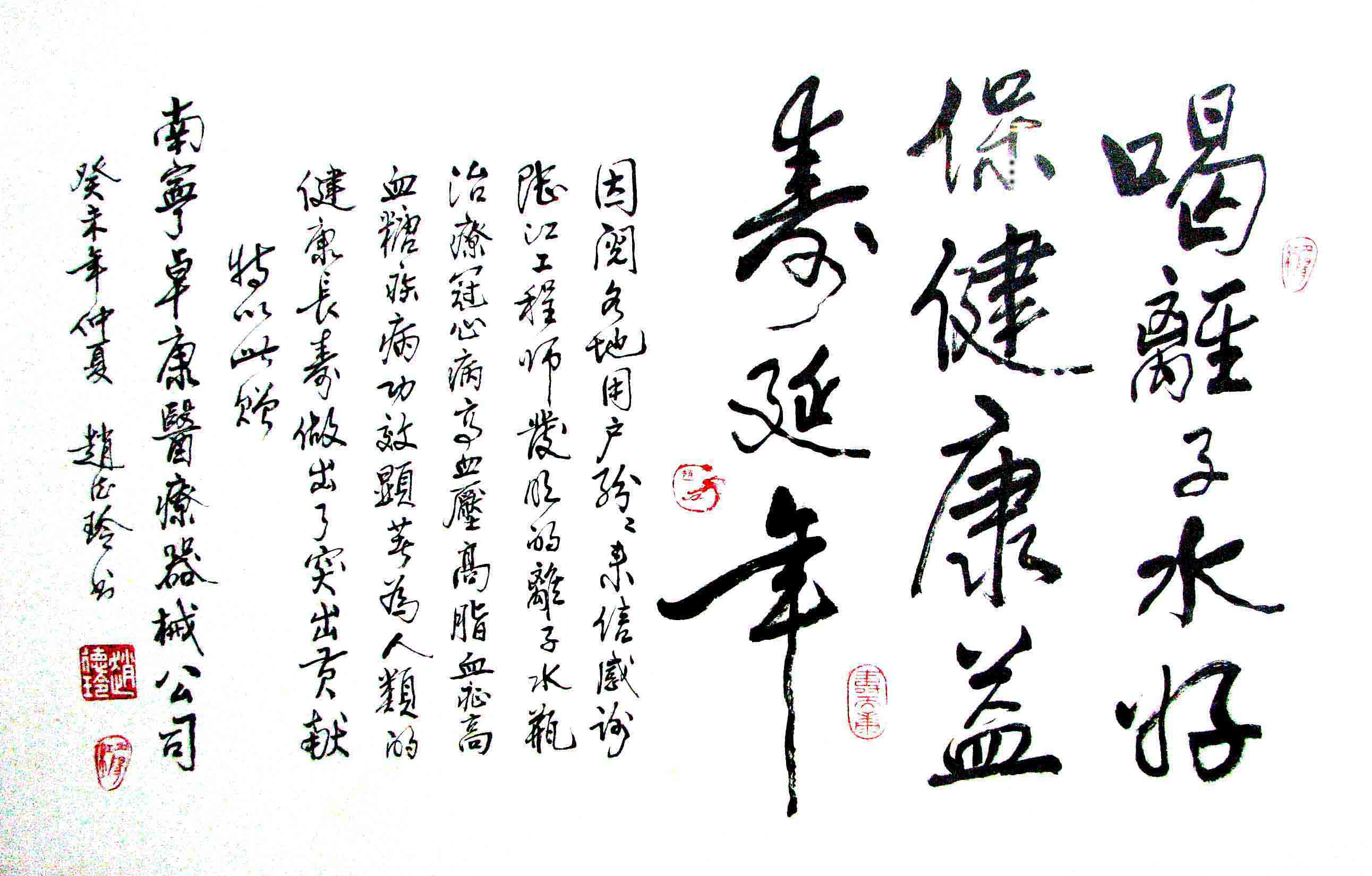 - -- 幾千年來(lái),人類靠醫(yī)藥不能根治冠心病、高血壓和糖尿病,如想根治,那是夢(mèng)想??墒?,我從中國(guó)基礎(chǔ)醫(yī)學(xué)研究成果受到啟發(fā),研發(fā)了一種發(fā)明產(chǎn)品,處理出微小分子團(tuán)水讓人飲用,實(shí)現(xiàn)了人類這一夢(mèng)想!患者飲用后遠(yuǎn)離了冠心病、高血壓和2型糖尿病。這一成果曾經(jīng)過(guò)臨床試用和專家鑒定,作為準(zhǔn)字號(hào)醫(yī)療器械讓廣大患者飲用,療效進(jìn)行跟蹤調(diào)查。很多患者的反饋情況令人感動(dòng),我放在公司網(wǎng)站上(nnzk.com),震撼了醫(yī)學(xué)專家,也使廣大同胞受到啟發(fā)。人們盼望飲用它給細(xì)胞補(bǔ)水,治愈多種病癥,既省錢,又安全,而且延長(zhǎng)壽命。